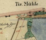 Tiský mlýn se nacházel poblíž Tiského dvora a byl majetkem vrchnosti. Rybník a okolní pozemky patřily také baronu Nádhernému, jenž vlastnil velkostatek a zámek v Moravci. Mlýn je zobrazen na II. vojenském mapování a na císařském povinném otisku z r. 1835.