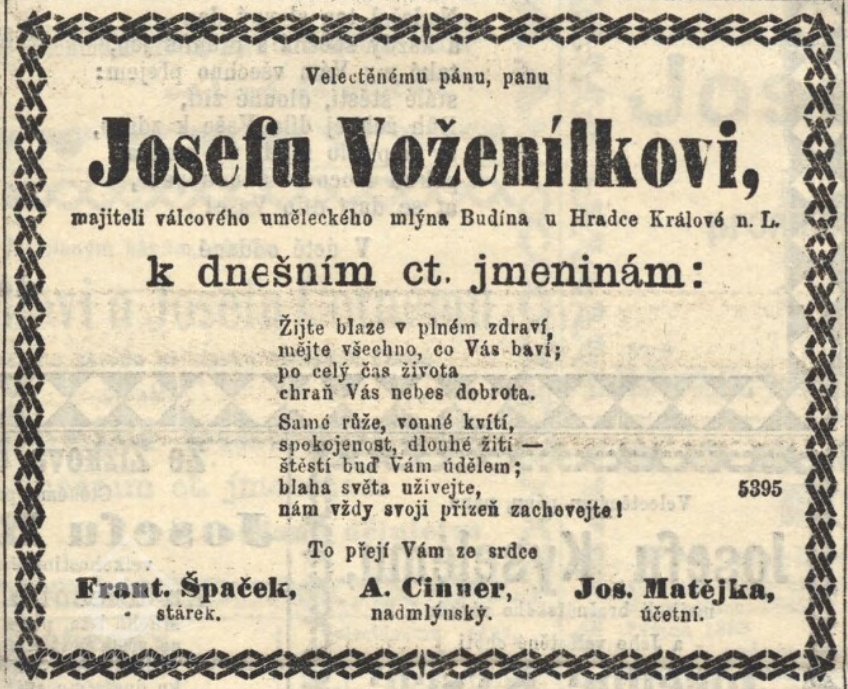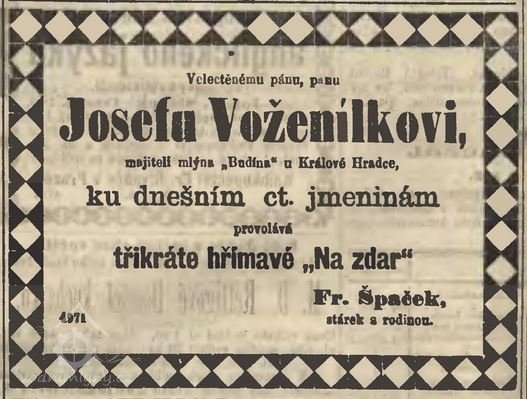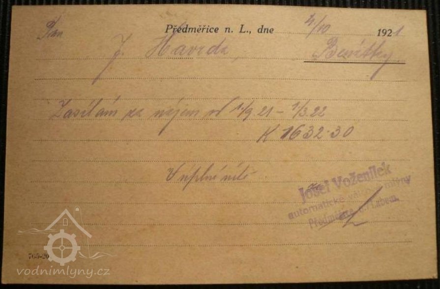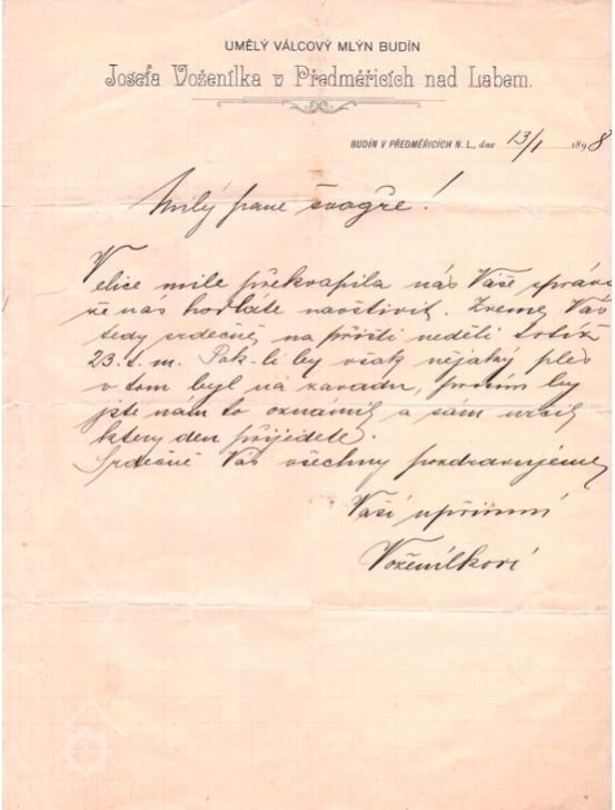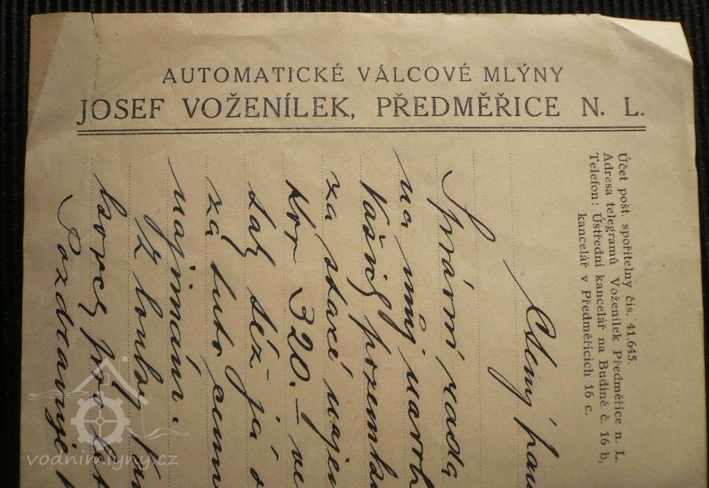 1890 Josef Voženílek mlýn přestavěl a zaopatřil novými stroji