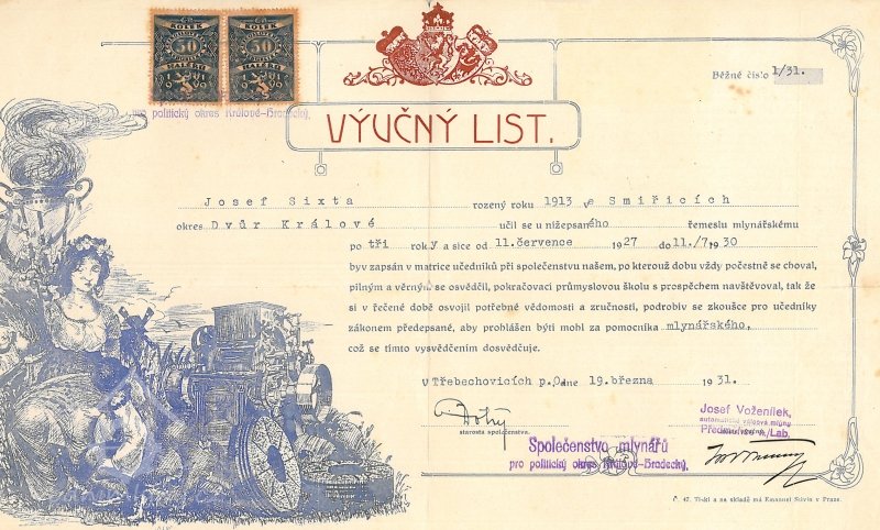 V roce 1833 se připomíná jako majitel mlýnů Jan Dušek.