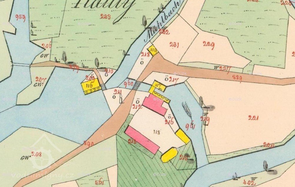 1911 byl zbořen mlýn Na starých a pila. Místo ní tu byly postaveny 2 turbiny a malá elektrárna.