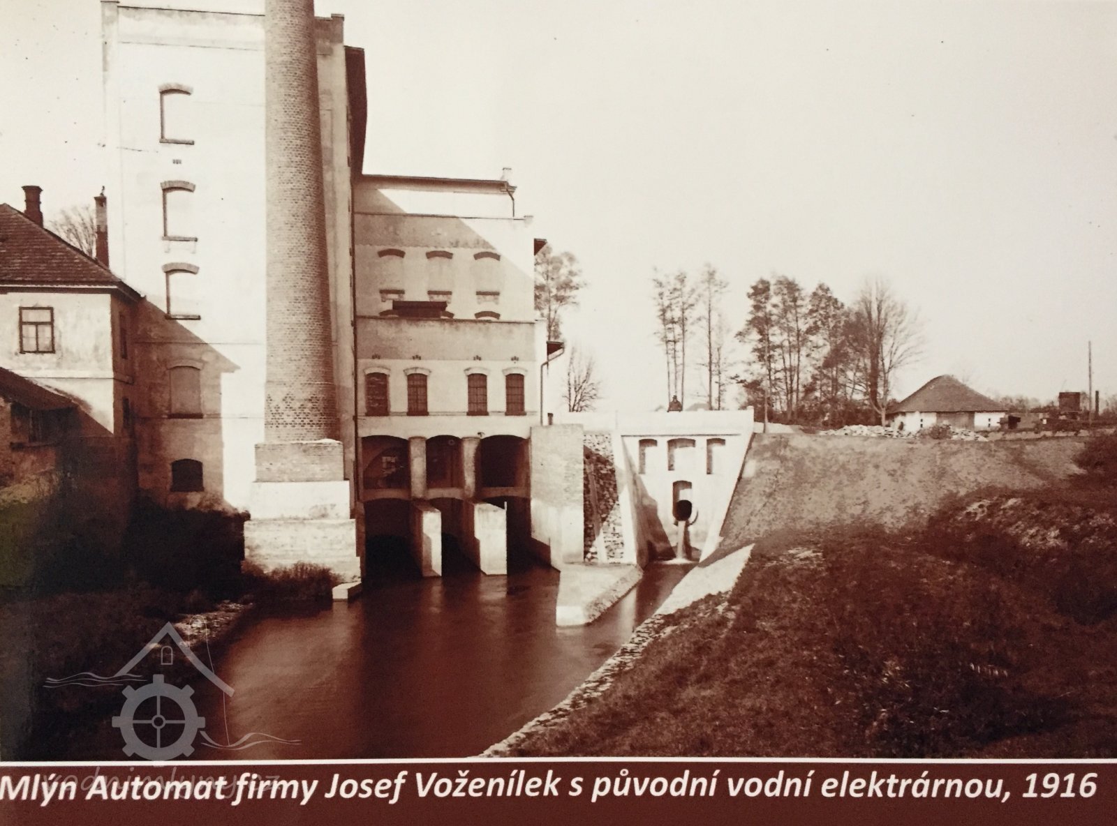 1916 začal J.Voženílek stavět u mlýna malou vodní elektrárnu o výkonu 10 kW, byla dokončena 1921, ale již 1920 začala dodávat proud  do sítě v Hradci a dvěma linkami do Hořic a do Rychnova nad Kněžnou.