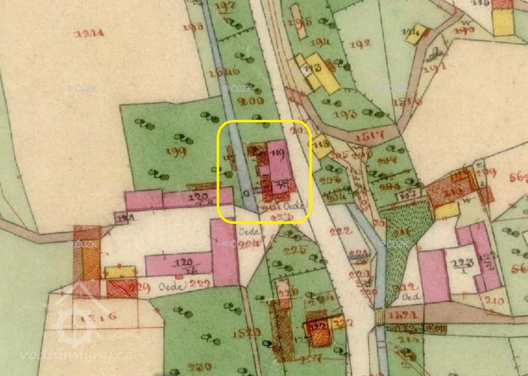 Mlýn zanikl po r. 1950. Na jeho místě je vsazen mlecí kámen.