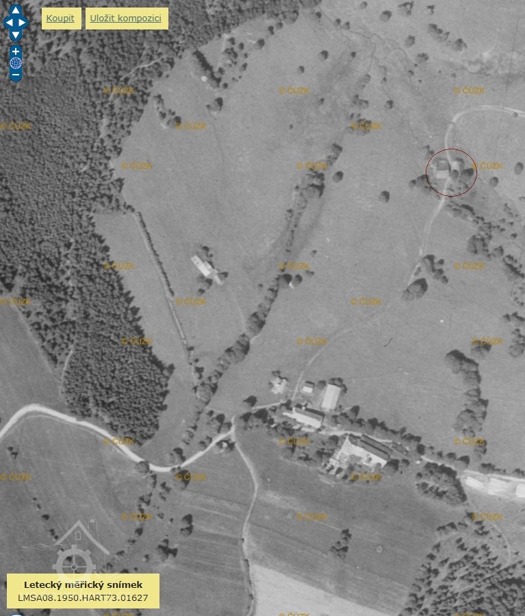 Z leteckých měřických snímků lze zjistit, že ke zbourání budovy mlýna a pily došlo mezi roky 1950 a 1963.