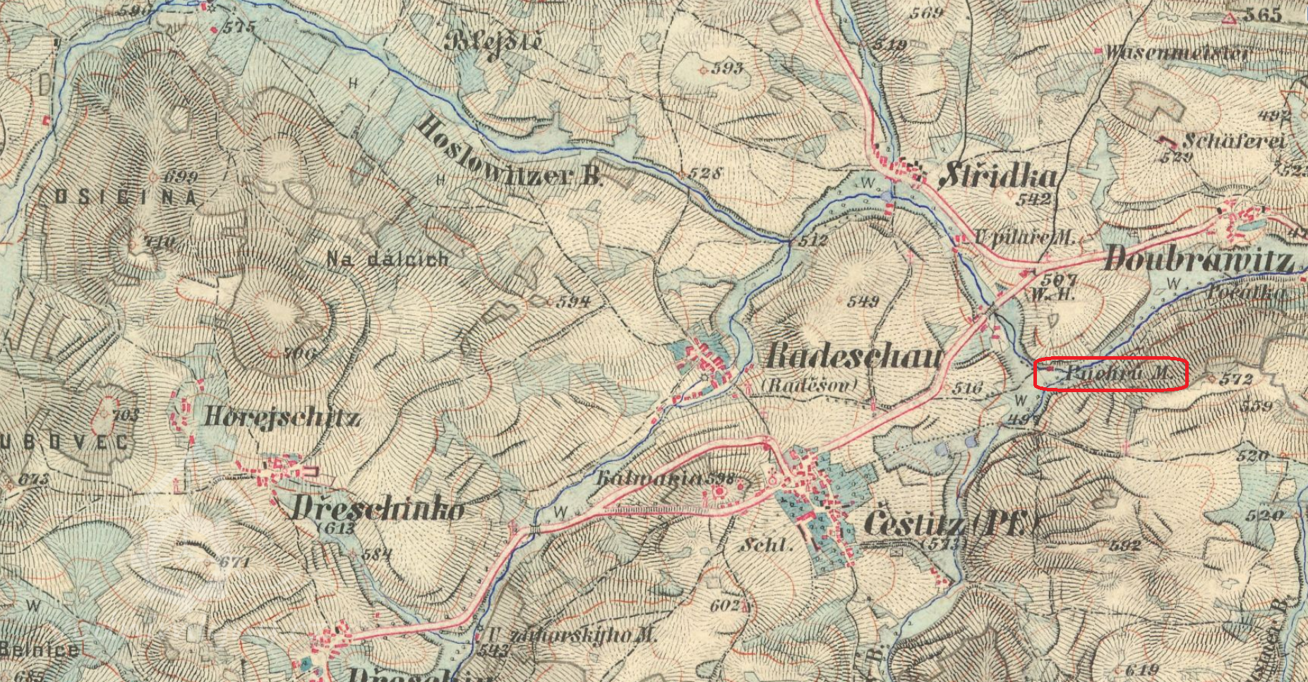 1,8 km sv od kostela Stětí sv. Jana Křtitele v Česticích