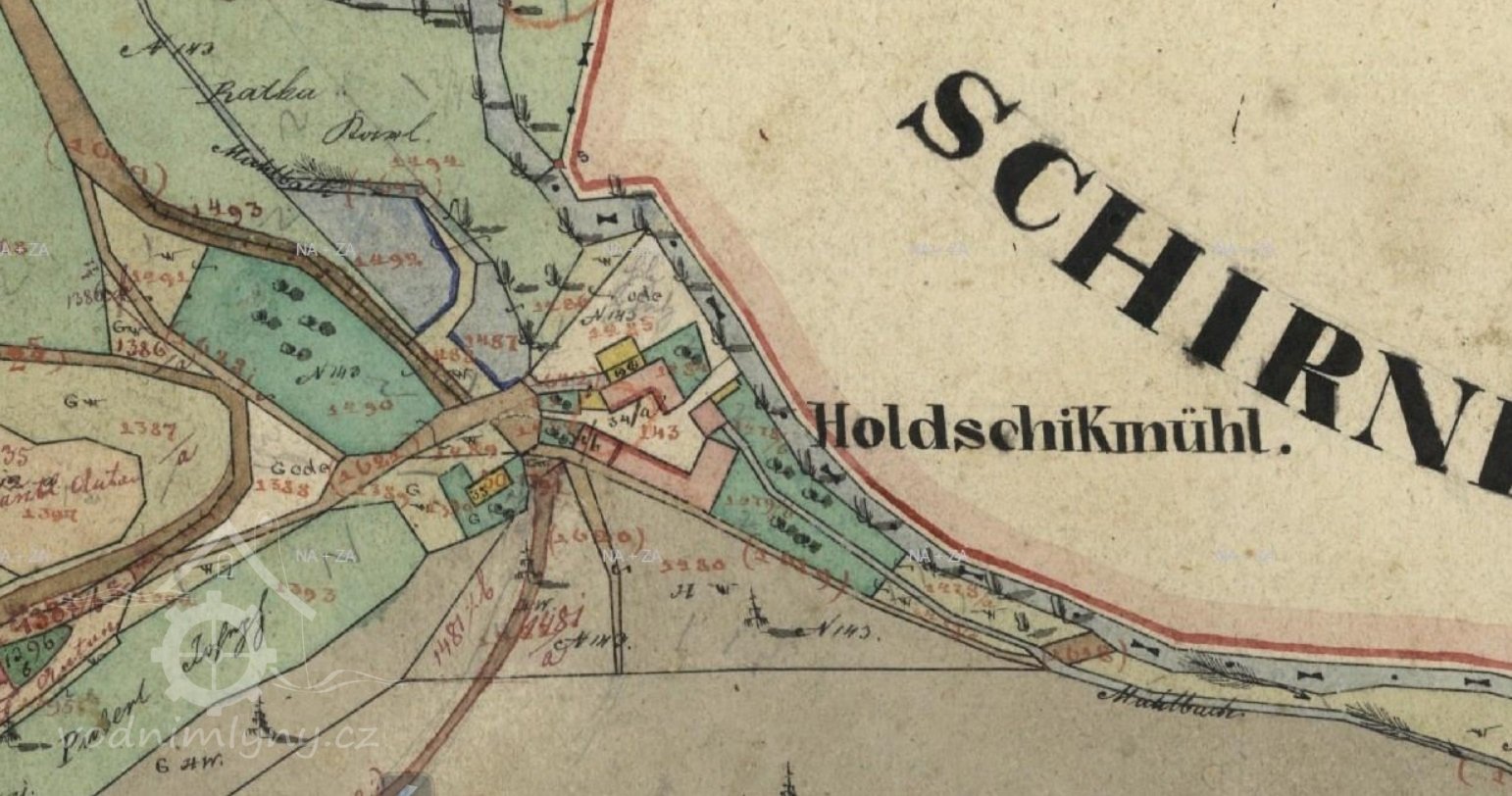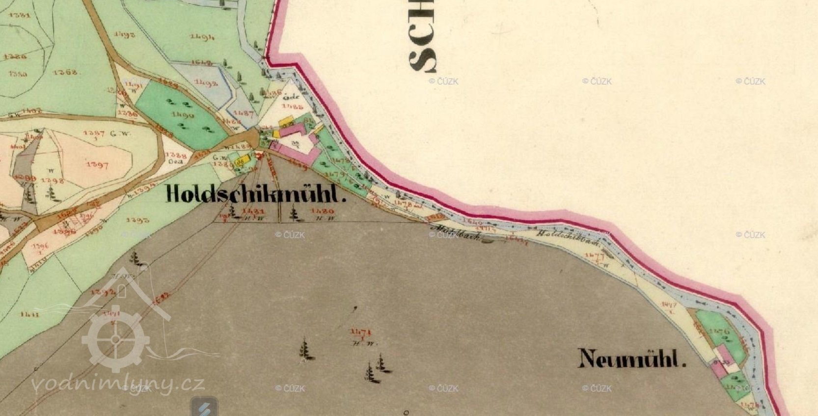 Nad mlýnem se nacházely dva rybníky, od nich tekla vaoda náhonem ke mlýnu, potom pokračovala odtokovým kanálem, který přecházel v další náhon k níže položenému Novému mlýnu.