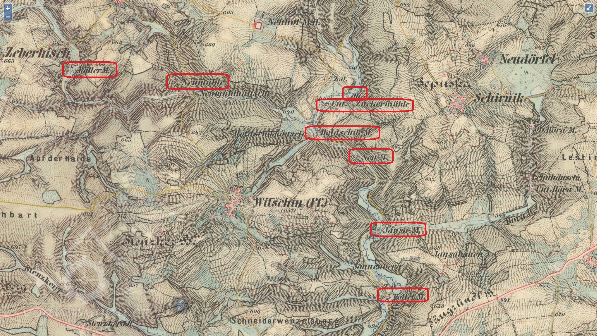 Zbořený mlýn mlýn na Úterském potoce nacházející se severovýchodně od obce Vidžín, pod soutokem Úterského a Telecího potoka.