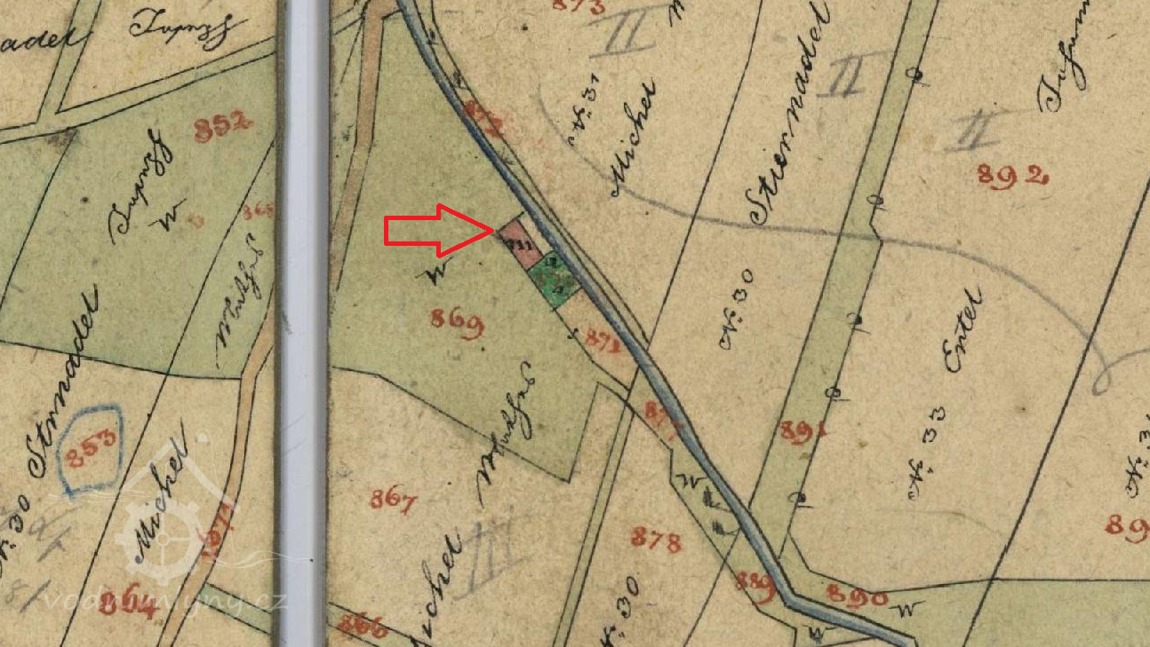 Popis1930: 1 turbína Francis, hltnost 0,8 m3/s, spád 0,9 m, výkon 7,2 HP
