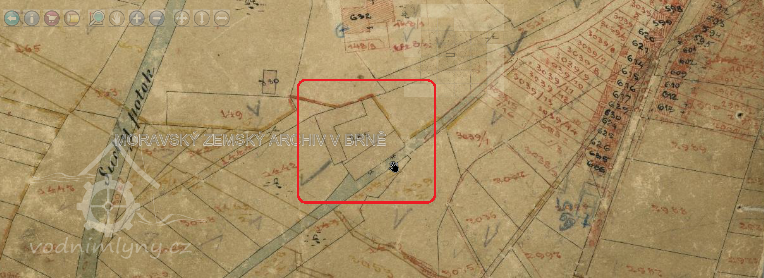 Mlýn jižně od centra města. V areálu dnes sídlí Technické služby Kyjov.