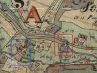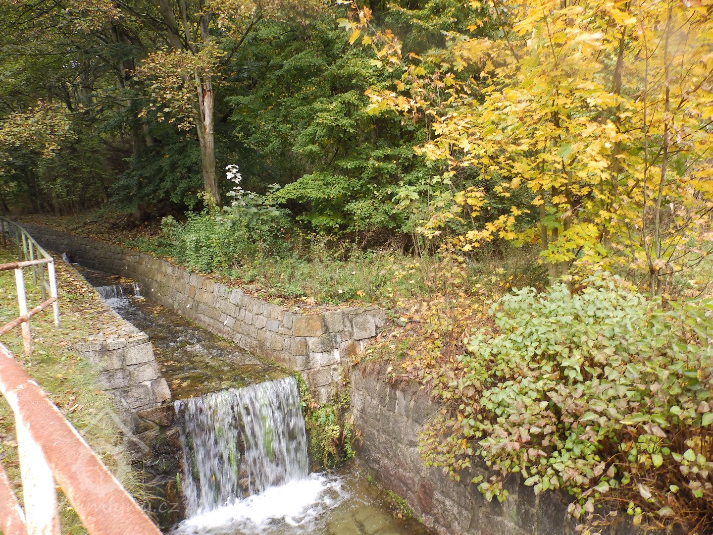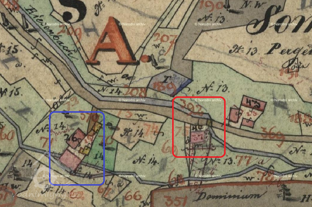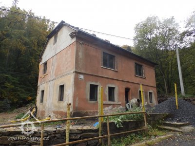 Horní mlýn s novější pilou v Rýznburku. Mlýn dnes prochází rekonstrukcí, z pily zůstala jen mohutná hráz z kvádříkového zdiva.
