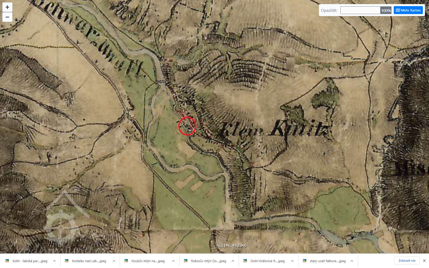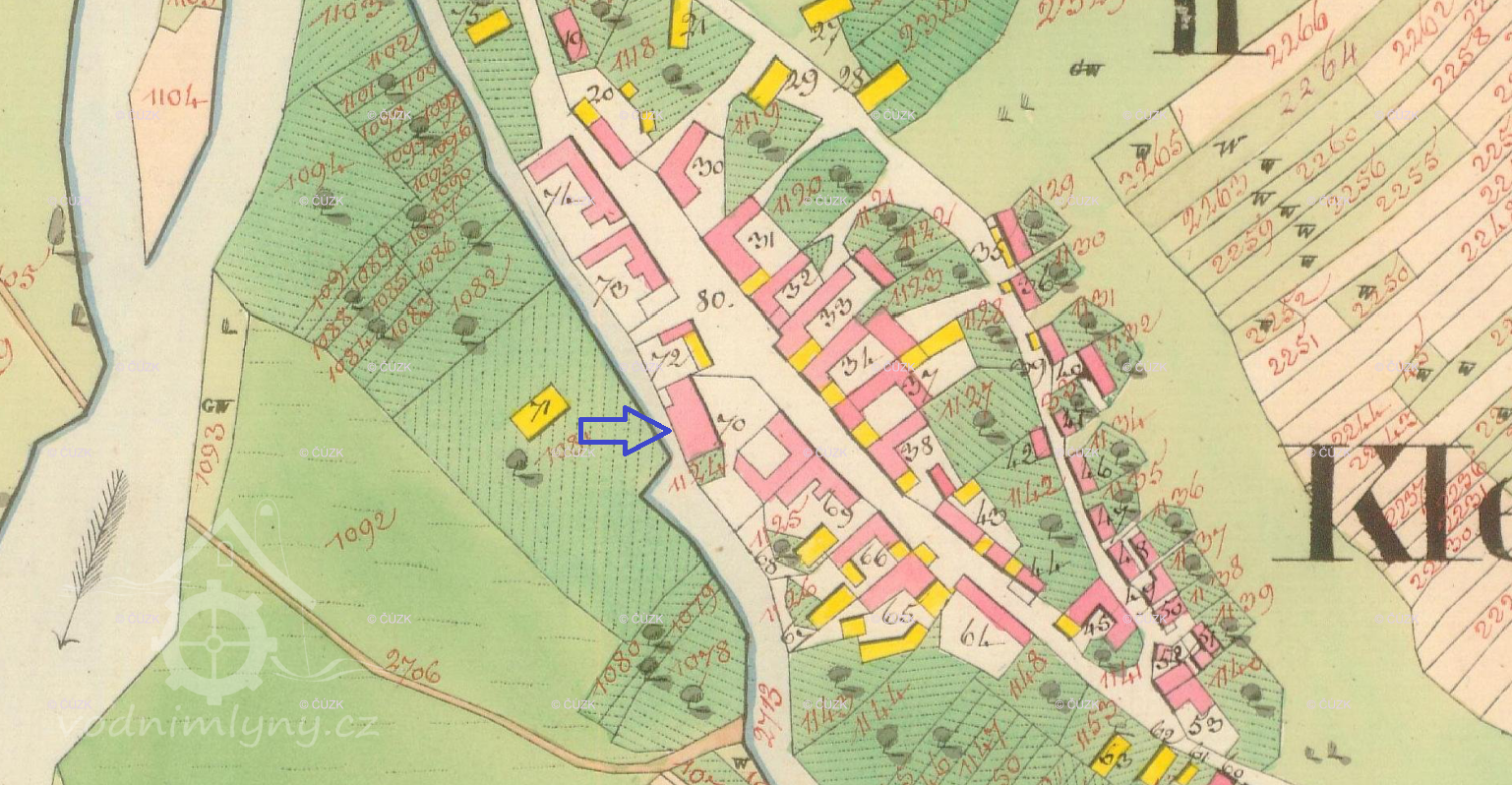 Popis1930: 1 kolo na svrchní vodu, hltnost 2 m3/s, spád 1,9 m, výkon 5 HP