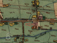 PopisDle indikační skici stabilního katastru 1843 měl mlýn 2 vodní kola na západní straně.