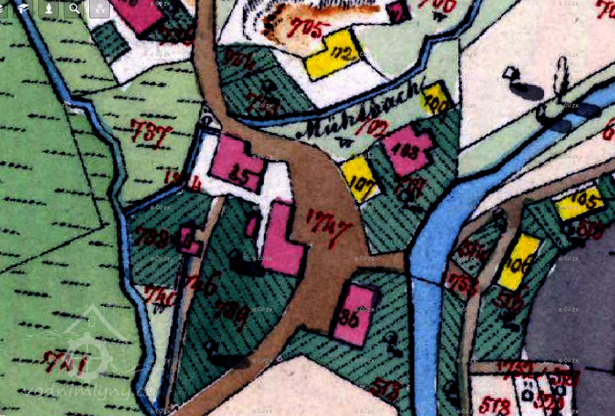 Popis1930: 1 kolo na svrchní vodu, hltnost 0,103 m3/s, spád 8,9 m, výkon 8 HP