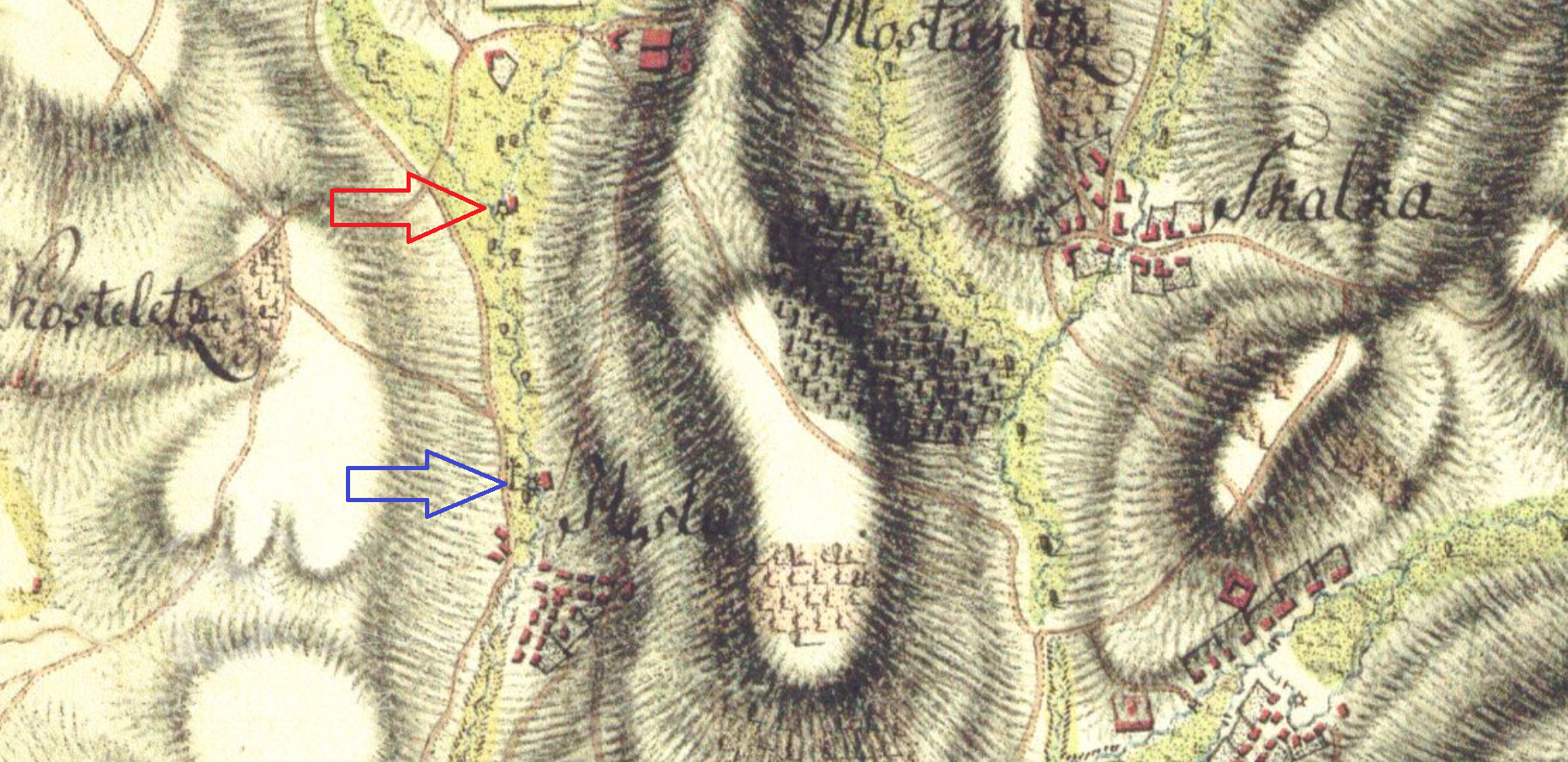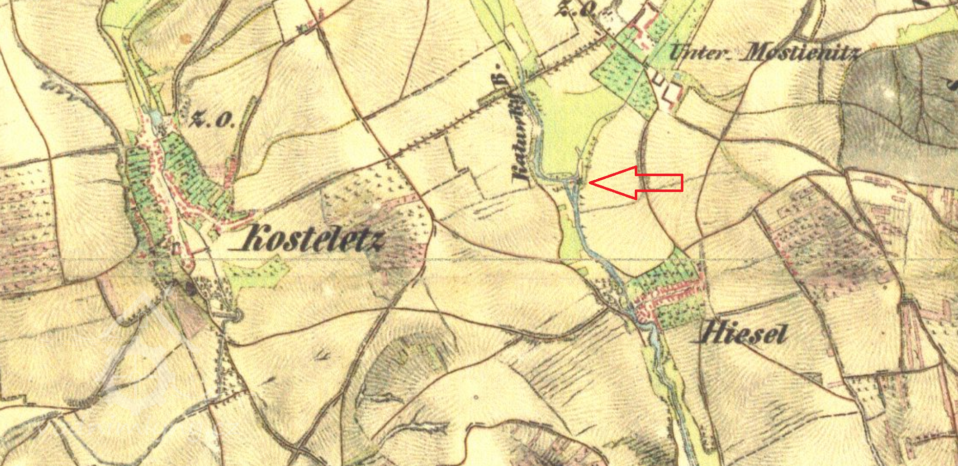 V 17. stol. v Hýslech připomínány 2 mlýny.