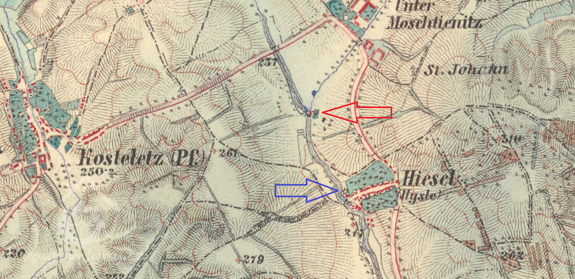 V 17. stol. jsou v Hýslech připomínáný 2 mlýny, horní se měl nalézat na soutoku Moravanského potoka s Moštenkou.