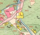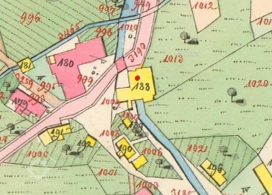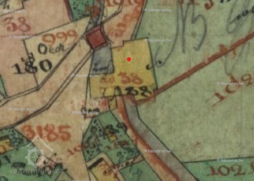 Na indikační skice a Císařských povinných otiscích je vyobrazena v místě mlýna spalná budova (nyní čp. 217) a velká zděná budova (část nyní zabírá čp. 326)