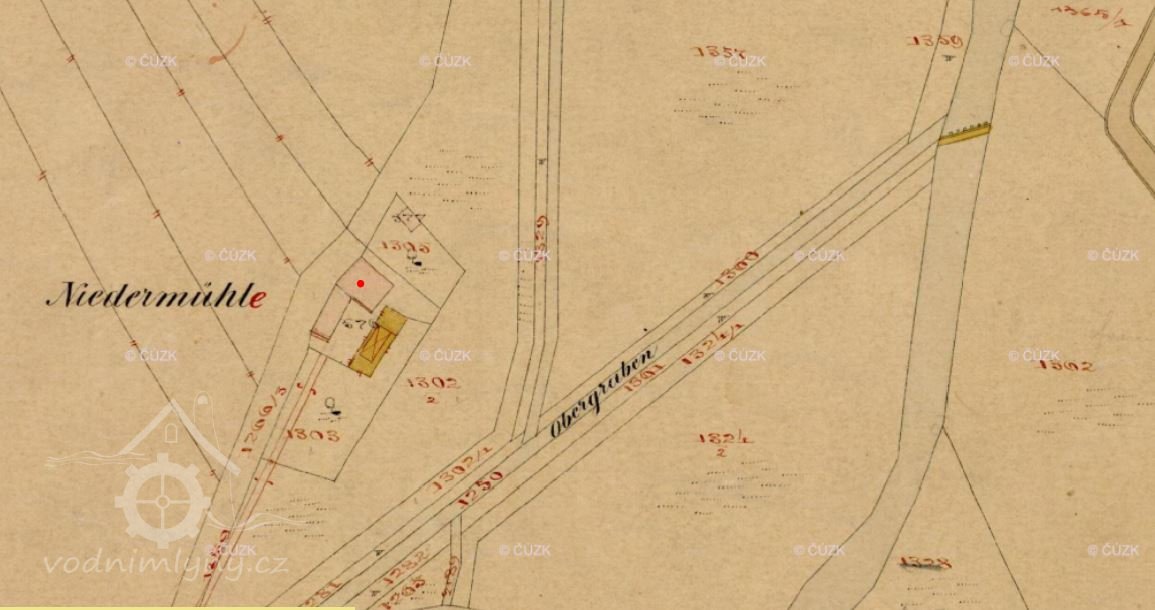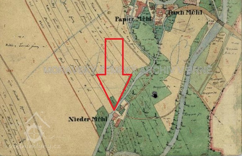 V místě bývalého mlýna zahrádkářská kolonie, průběh náhonu (odtokového kanálu od tkalcovny) stále v terénu místy patrný.