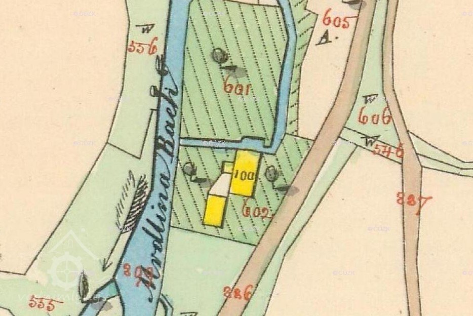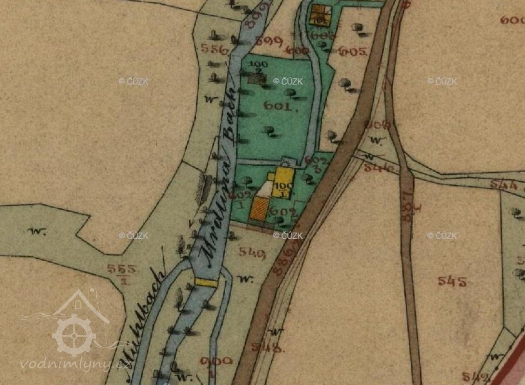 PopisV roce 1930 měl mlýn 1 kolo na vrchní vodu, hltnost 0,094 m3/s, spád 4,3 m, výkon 4 HP.