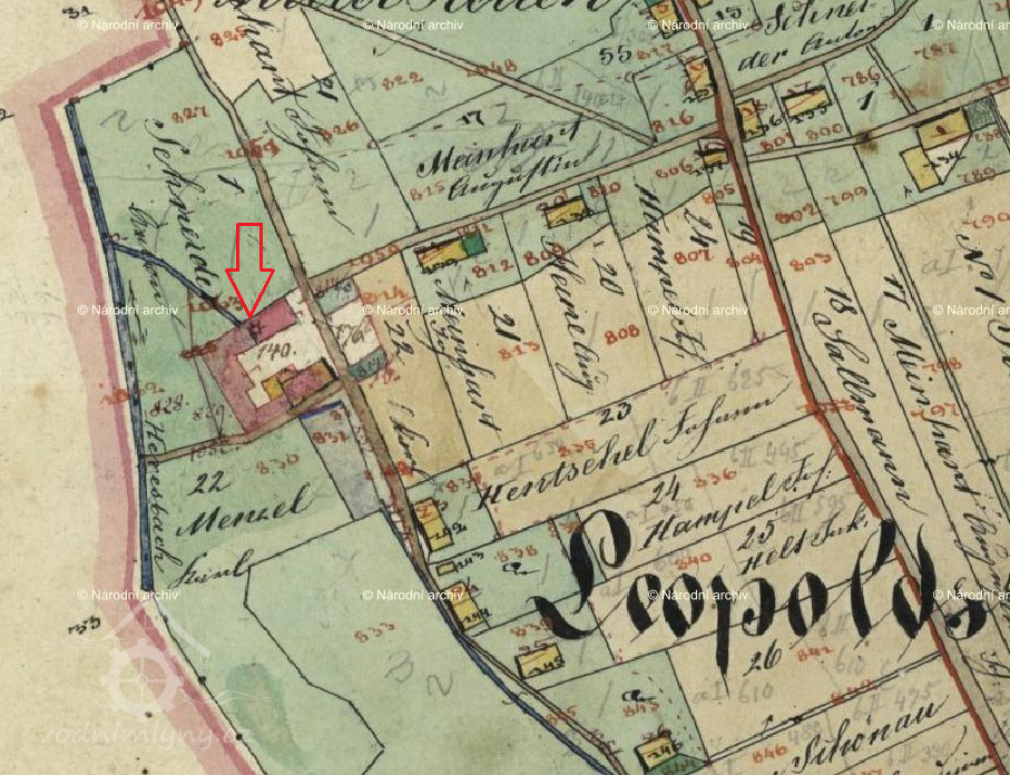 Na indikační skice stabilního katastru je již vodní provoz zakreslen jako velký tovární komplex s čp. 22, jako majitel je uveden Karl Menzel.