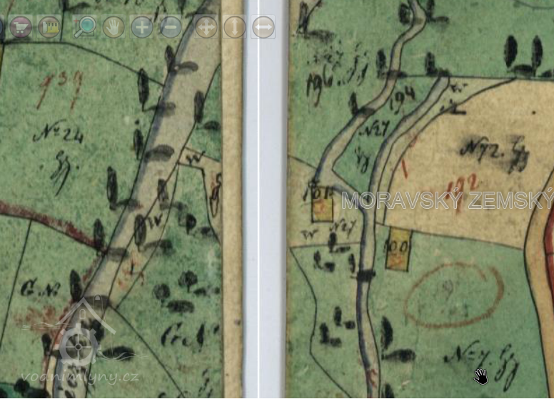 Popis1930: 1 kolo na svrchní vodu, hltnost 0,11 m3/s, spád 3,9 m, výkon 3,75 HP