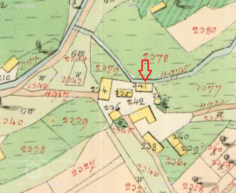 Voda na Zimkův mlýn byla přiváděna od splavu pod „Hrabčím“ pod dolním hostincem (Reisův). Náhon vedl vedle silnice a Klišové stodoly (zbořena) přešel na druhou stranu, kde přibral vodu Klišova potůčku a pokračoval k chalupám u Zimků (kovář), Škývarů a Slováčků na mlýn. Odtud byl odtok opět do Senice. Mlýn i splav byly zrušeny kolem roku 1935. Mlýnské náhony sbíraly i nárazové vody při deštích a táních ze strání nad nimi. Zrušením těchto vodotečí, zvláště v místech pozdější zástavby, vznikaly problémy, co s touto nárazovou vodou, která najednou neměla kam odtékat a podmáčela pozemky v jejím okolí. Nadělalo to i dost zlé krve mezi obyvateli těchto míst a MNV. Posléze byla tato situace řešena vybudováním odtokových struh a kanálů v postižených místech.