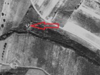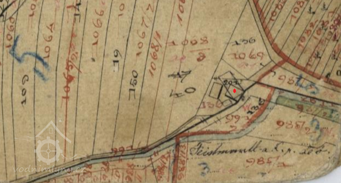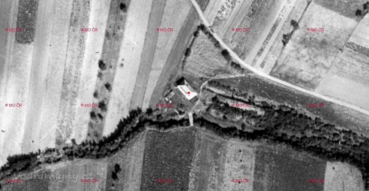 Na leteckém snímkování z roku 1953 je budova mlýna již zbořena a jsou patrné jen ruiny. (JV)