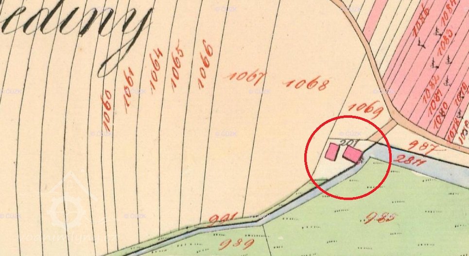 v roce 1805 postavena budova mlýna [Těšany].