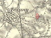 za války poničen a poté zbořen [Těšany]