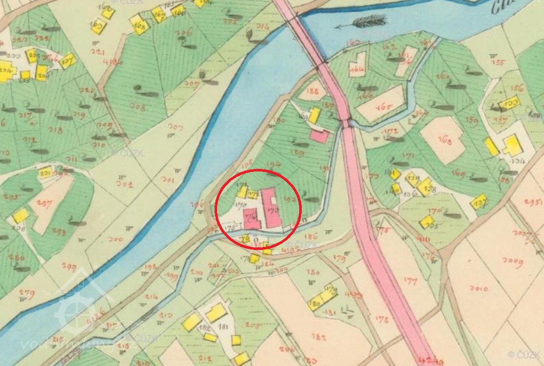 Objekt bývalé vodní pily se dochoval na břehu Hluchové v podobě, kterou získal již v první polovině