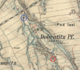 Mlýn na jižním okraji Dobratic. Není jasné, zda dnešní čp. 71 je novostavba nebo značně přestavěný původní mlýn.