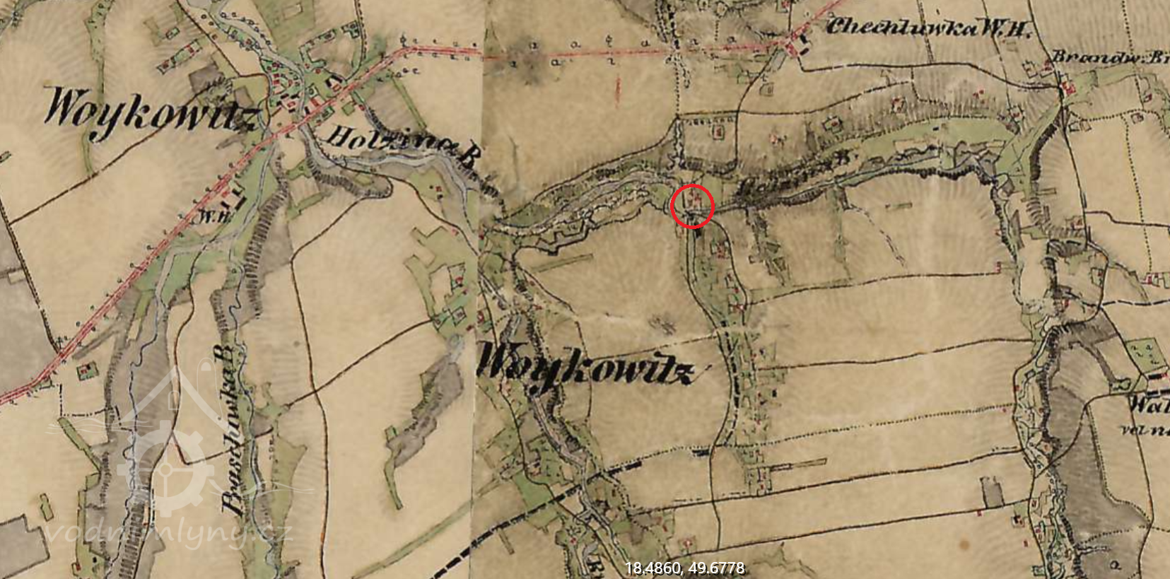 Zaniklý mlýn jižně od samoty Chechlůvka, jeden ze dvou mlýnů v Dolních Tošanovicích (osada Šprochovice, u níž ležel, však dnes náleží k Dobraticím).