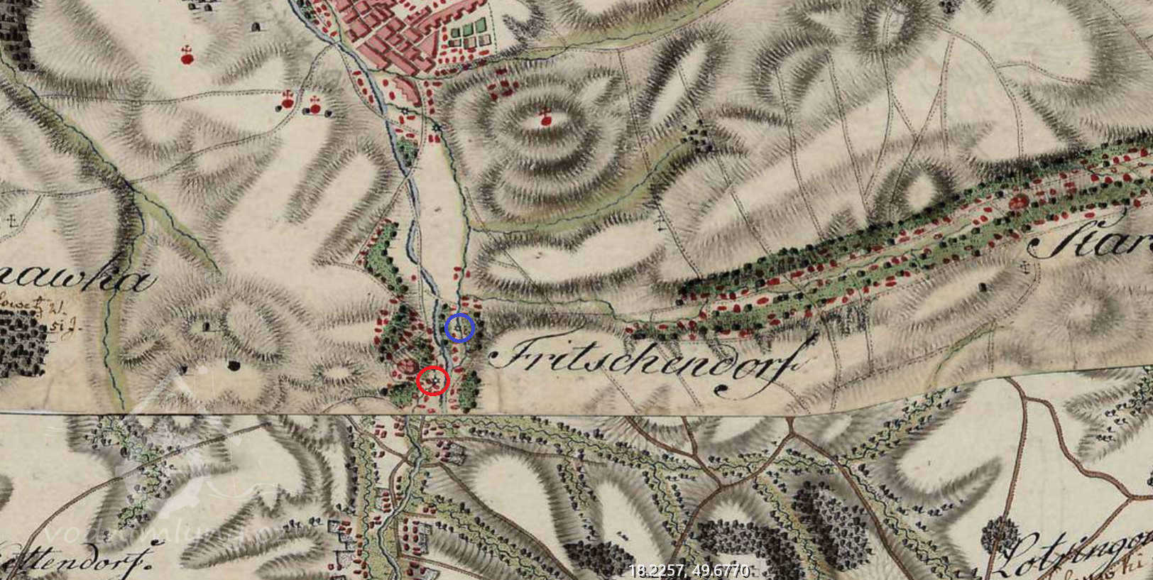 80 m jv od kostela Nanebevzetí P.Marie ve Fryčovicích