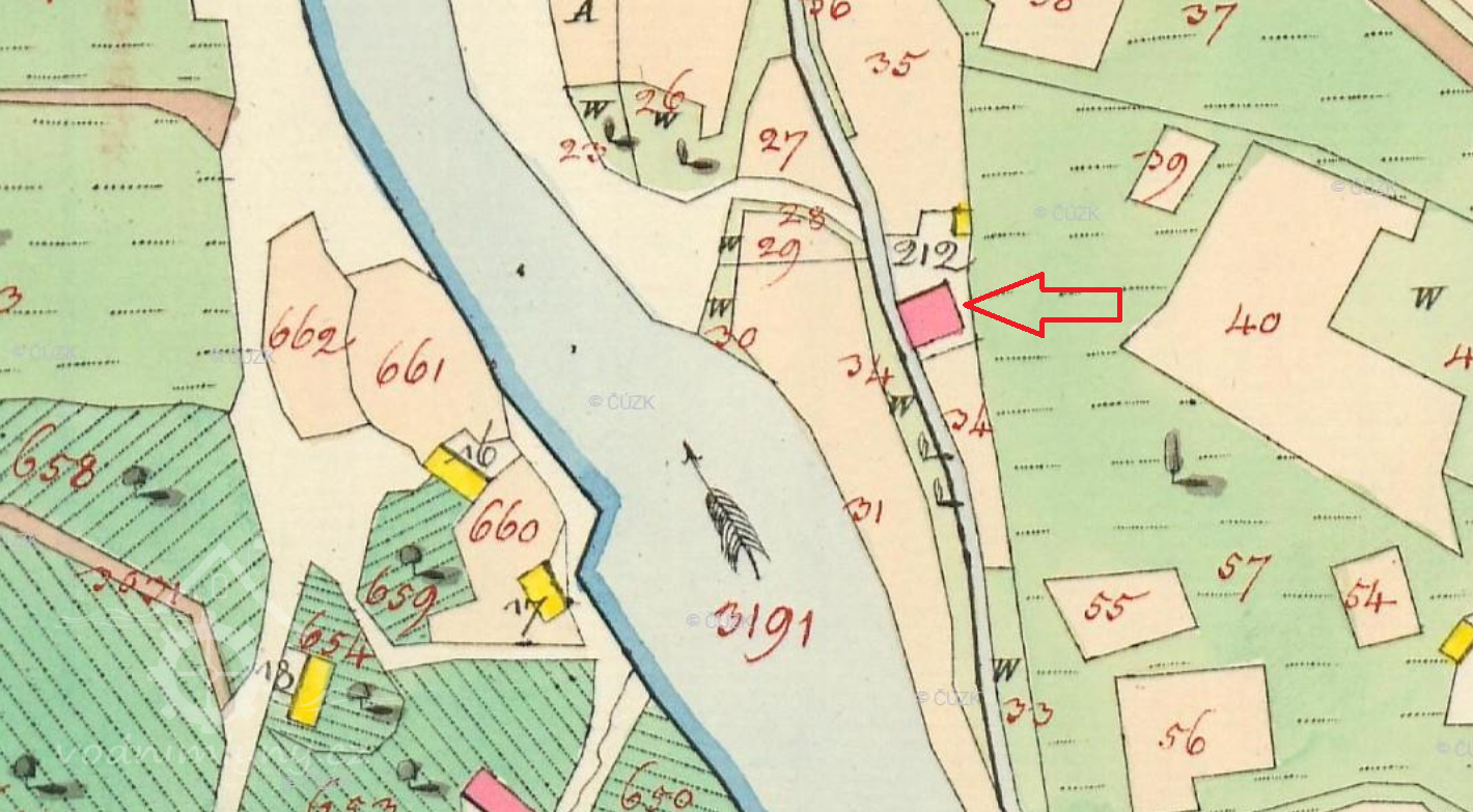 Mlýnské kolo se nacházelo na jihozápadním štítovém průčelí, přiléhající k vodní příkopě.