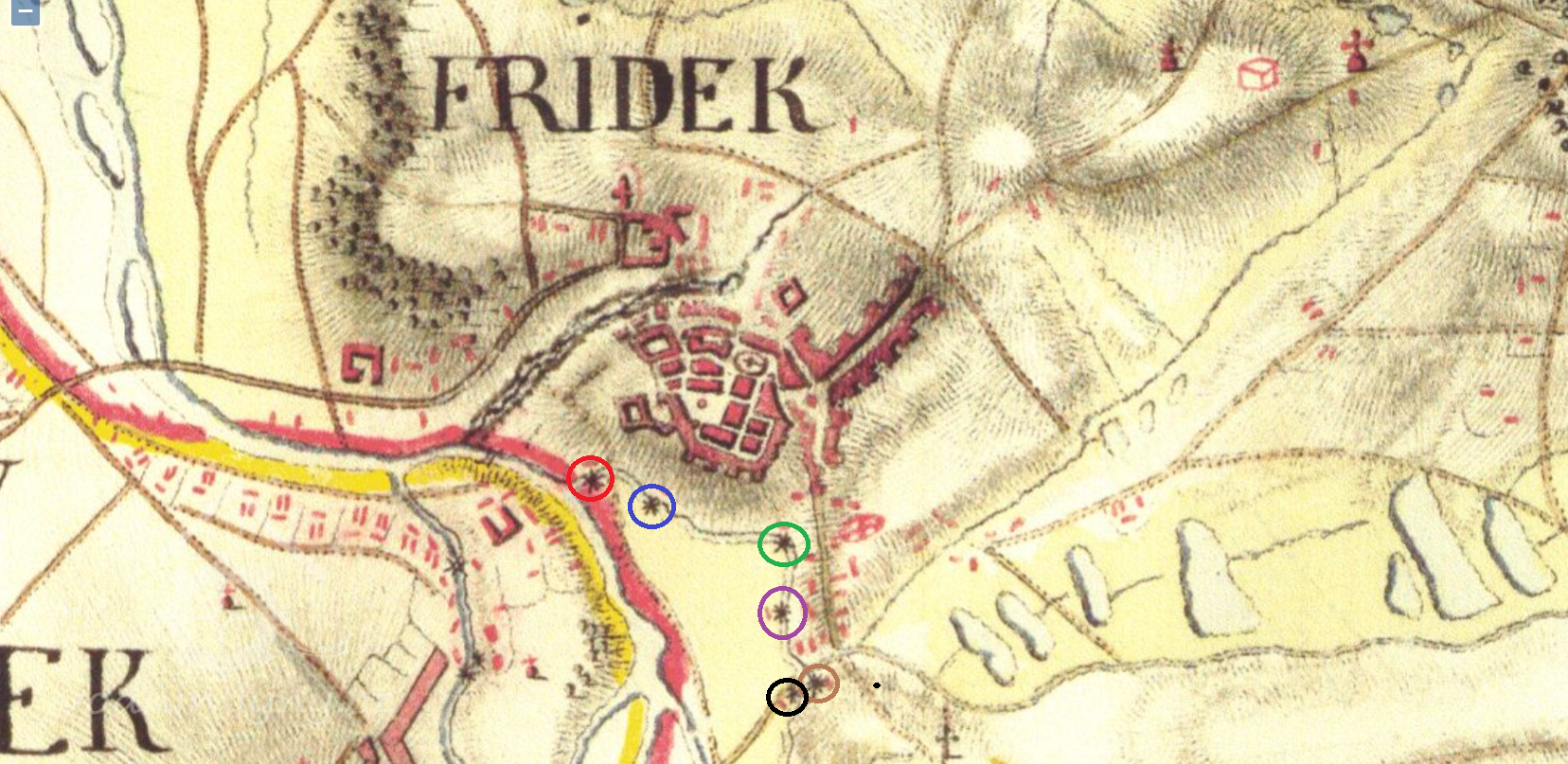 Vrchnostenské urbáře hrabat z Oppersdorfu z let 1636, 1651 a 1664 ve Frýdku zmiňují tři mlýny, jeden se 4 a dva se 2 složeními, zpracovaly 700 měřic pšenice a 1 700 měřic žita.