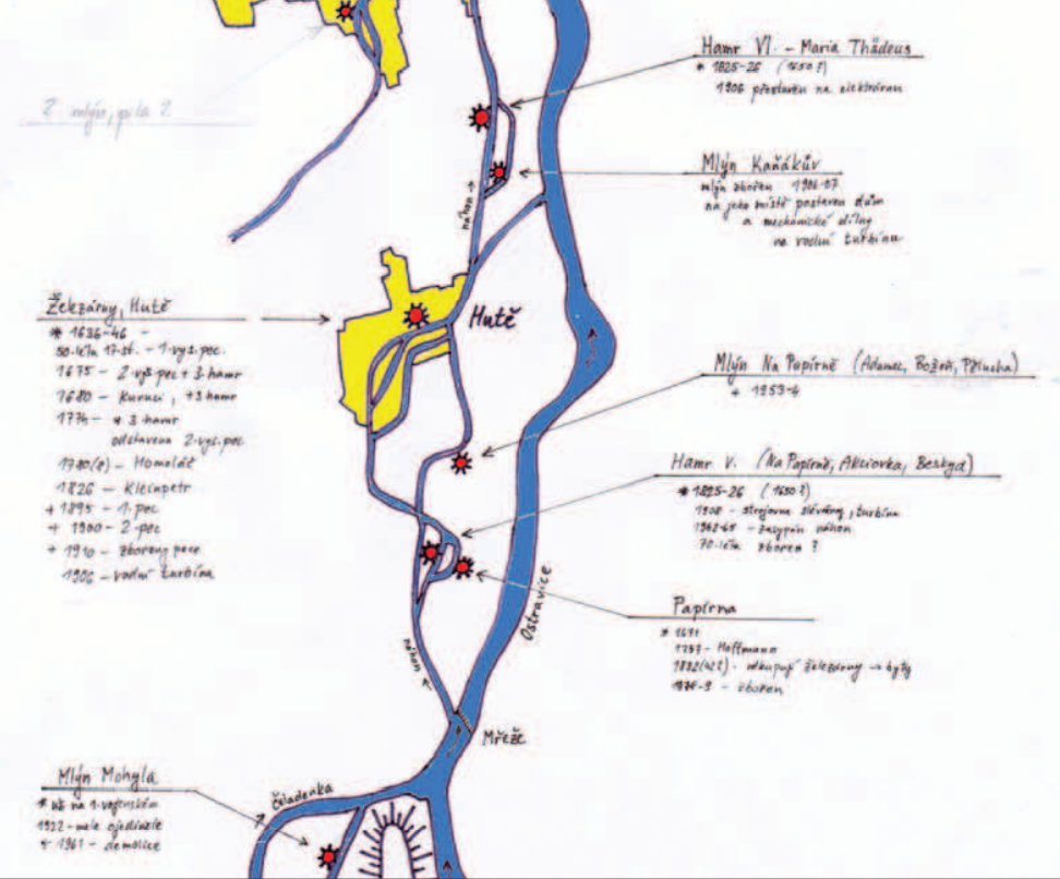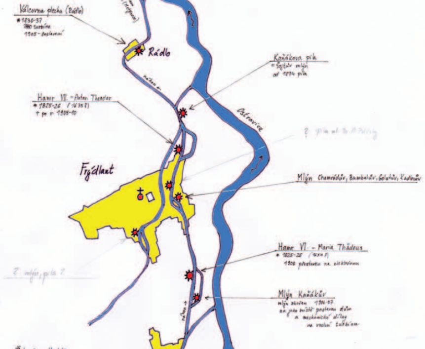 Dle sumáře z roku 1635 zde bylo v provozu celkem 5 pil, z toho 1 náležela k fojtství a nepodléhala vrchnostenskému zpoplatnění. Počtem pil se Frýdlantu n. O. přibližovaly pouze Kozlovice se 4 „pilnými mlýny“. Kromě pil se tehdy v obci nacházely ještě 3 „moučné mlýny“. Rovněž tento počet byl ve srovnání s ostatními lokalitami na hukvaldském panství vysoký, neboť třemi mlýny disponovaly pouze Kozlovice, městečko Místek a město Ostrava.