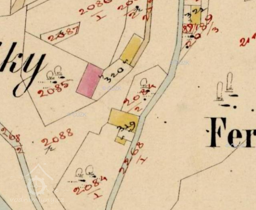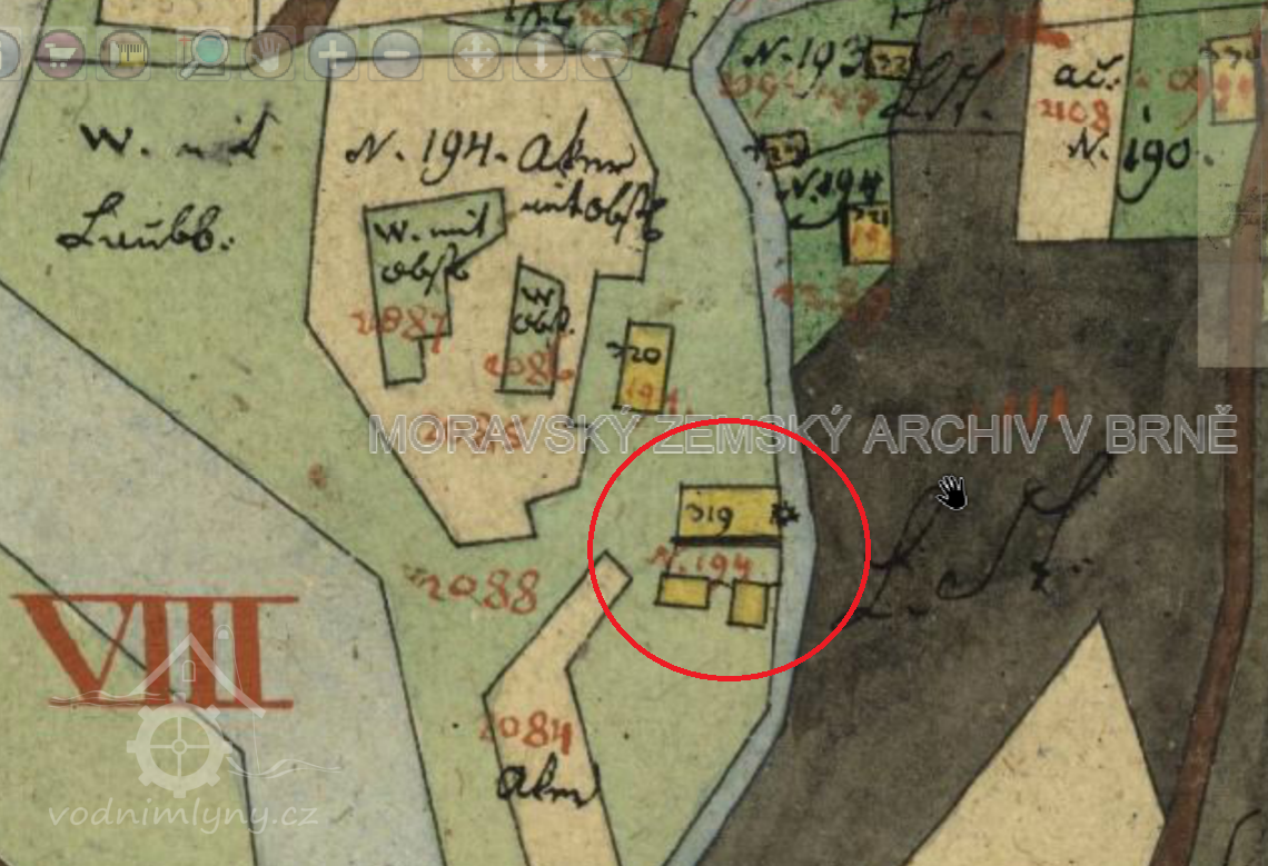 1906 majitel Josef Mohyla z čp. 194, nájemce mlynář Pělucha.