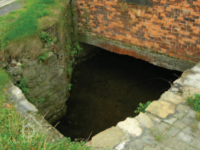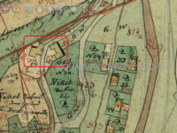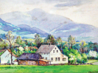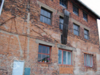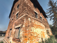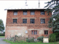 Původně dřevěný, dnes velký dům z režného cihlového zdiva.