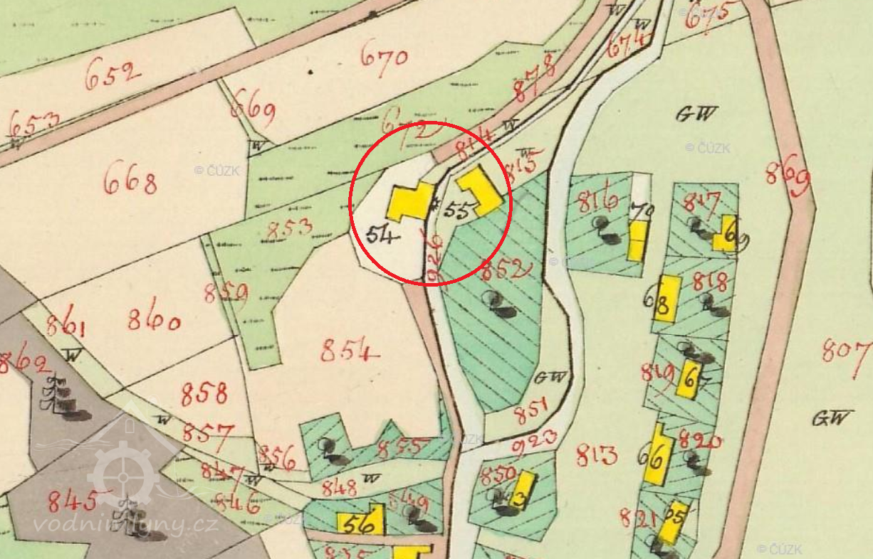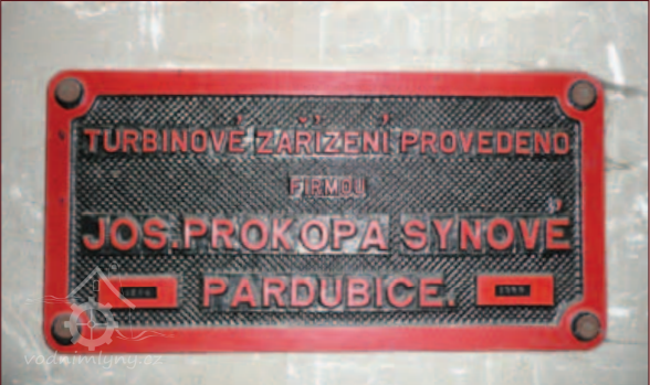 Popis1930: 1 kolo na svrchní vodu, hltnost 0,3 m3/s, spád 2,2 m, výkon 5,75 HP (4,26 kW)