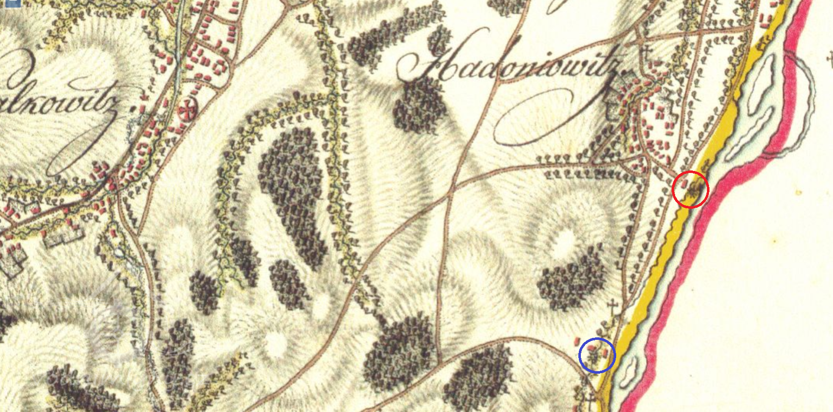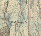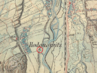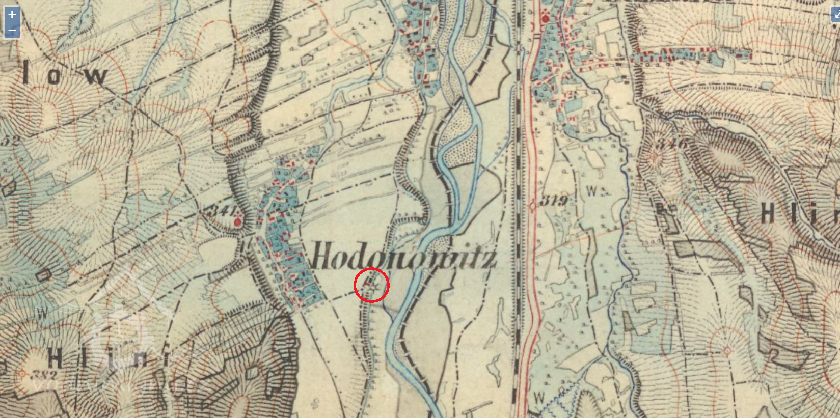 1,2 km jižně od kaple P.Marie na hřbitově v Hodoňovicích
