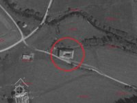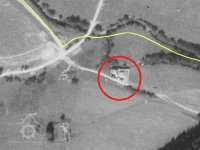 v roce 1949 ještě budovy stály, 1952 již jen ruiny