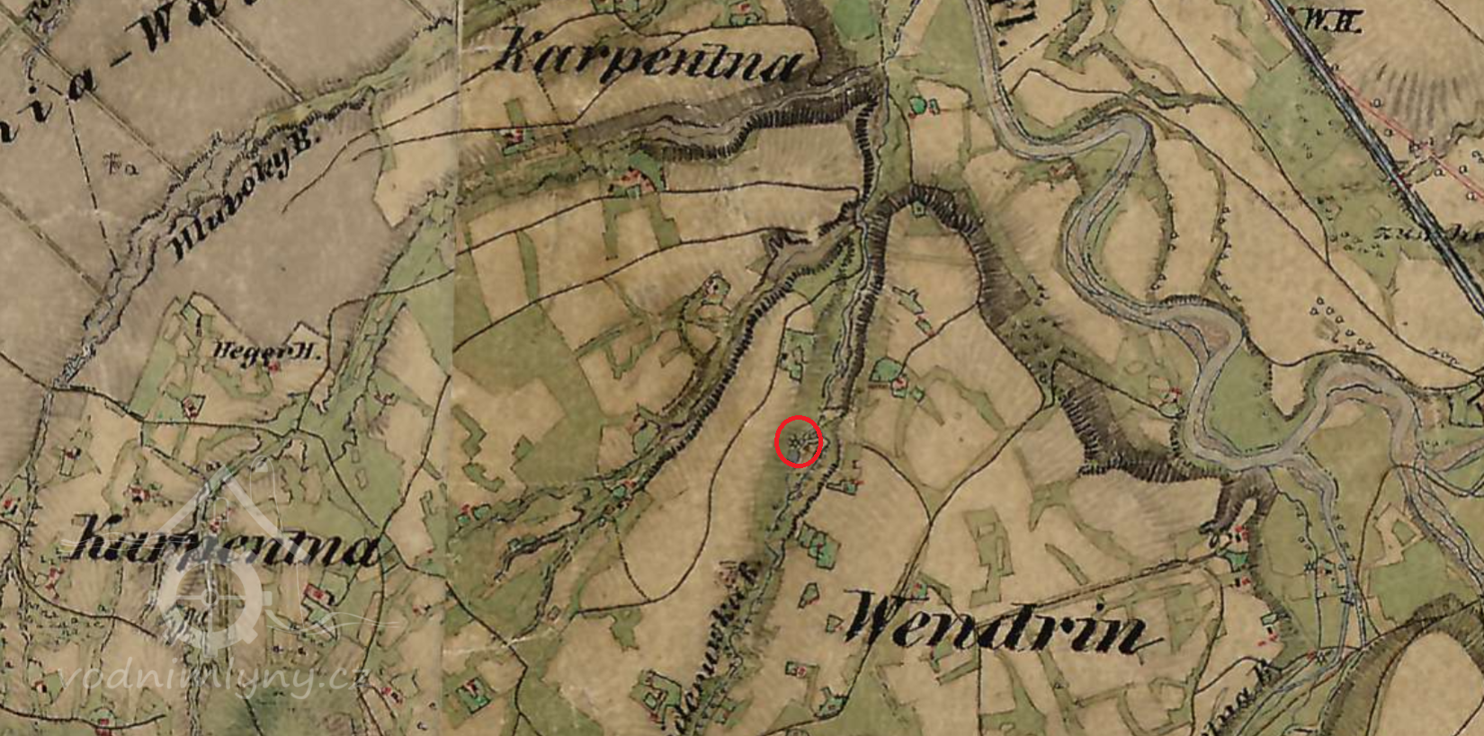 Nad mlýnem stával obdélný rybníček pč. 477, který z Liderova bral vodu a za mlýnem šla voda zpět do potoka.