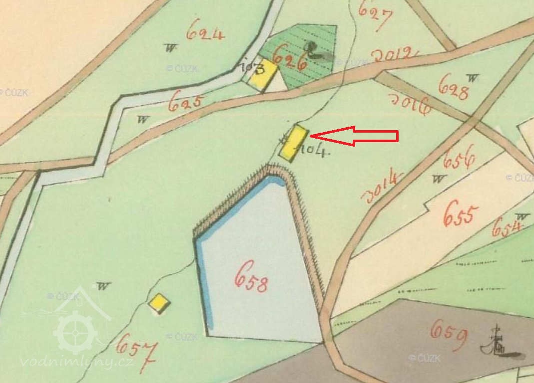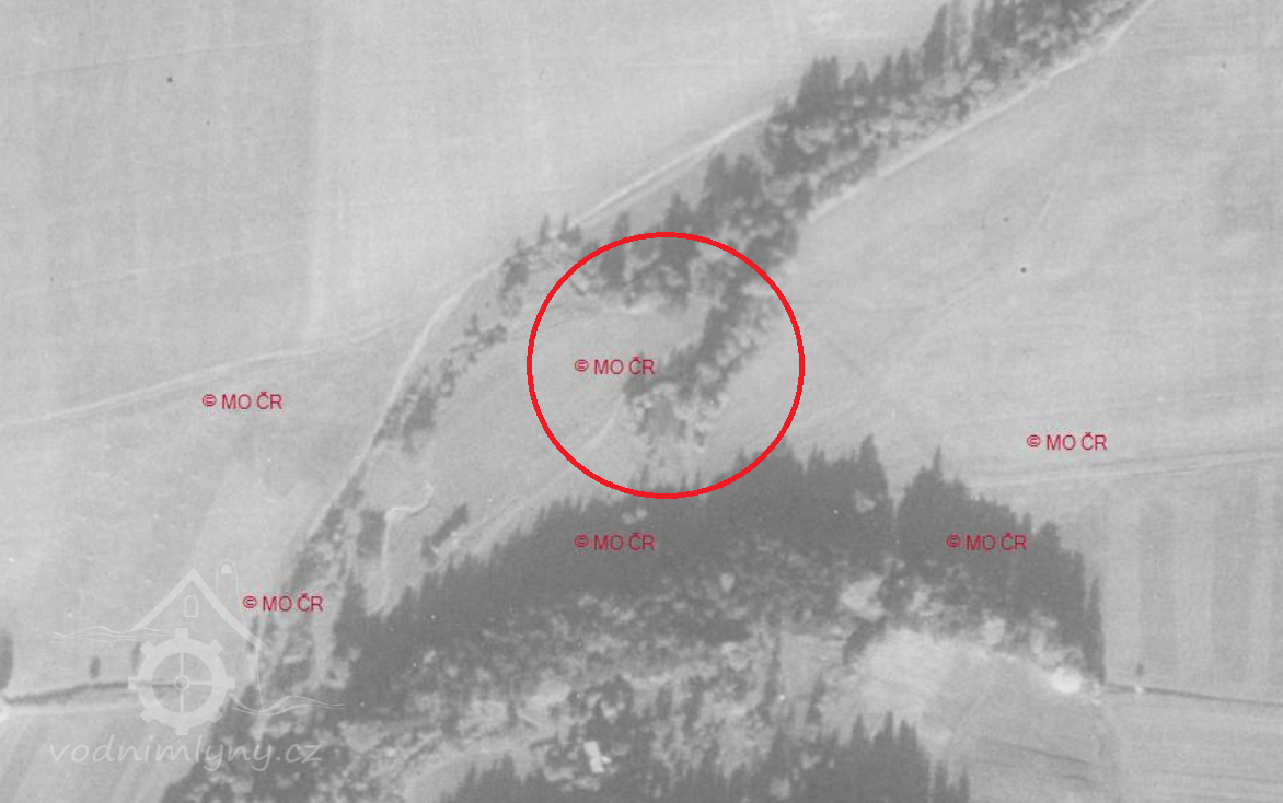 Zaniklý mlýn pod zanikajícím rybníkem poblíž chaty Koliba. Před II. světovou válkou byl posledním funkčním mlýnem v Komorní Lhotce.