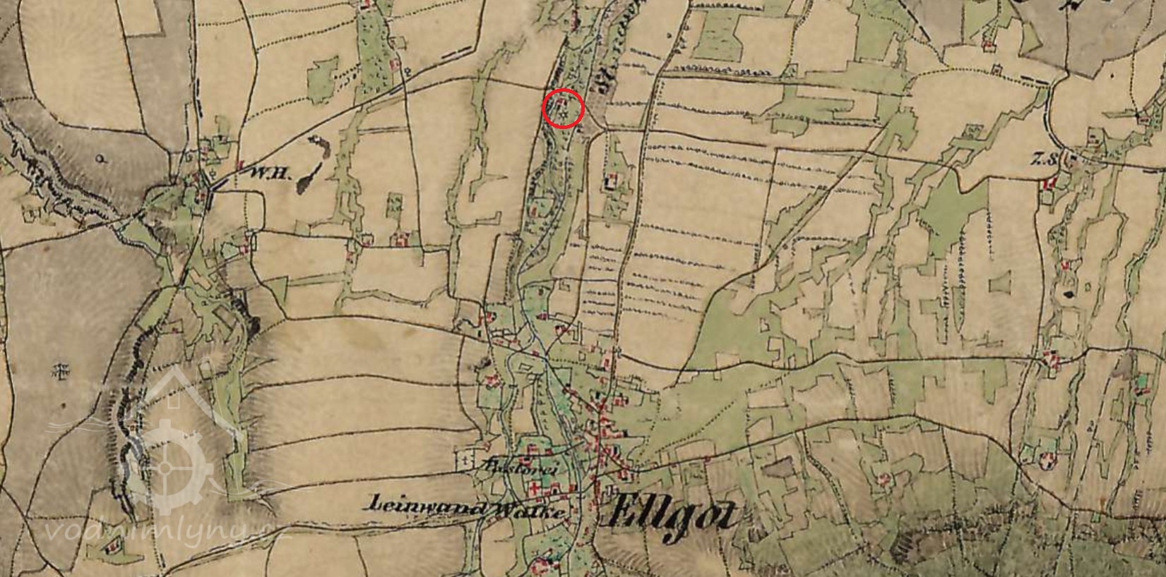 1793 vybudoval mlynář Jan Walach mlýn při chalupě č. 121 pod Dědinou (.Dziedzinu).