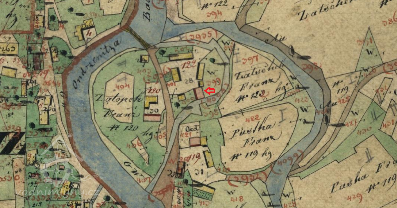 Byl tu malý rybník a náhon o délce asi 300 m, do kterého se vedla i odpadová voda z předešlého mlýna na čp. 253. Neexistuje terénní náznak průběhu náhona.