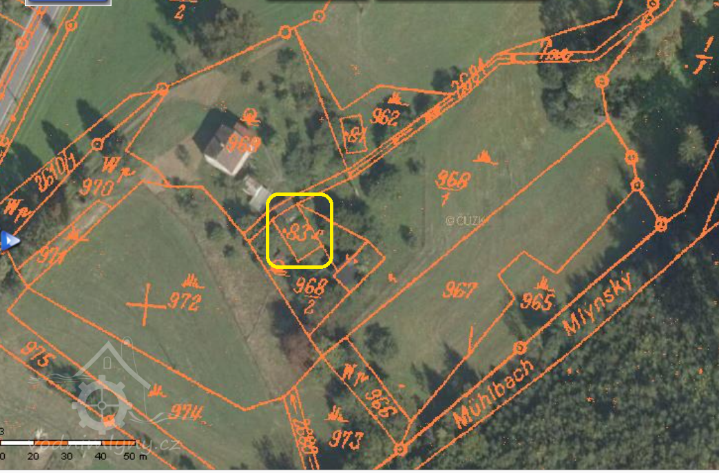 Velký jímací rybník nad mlýnem zcela zanikl.