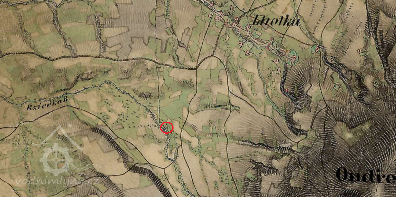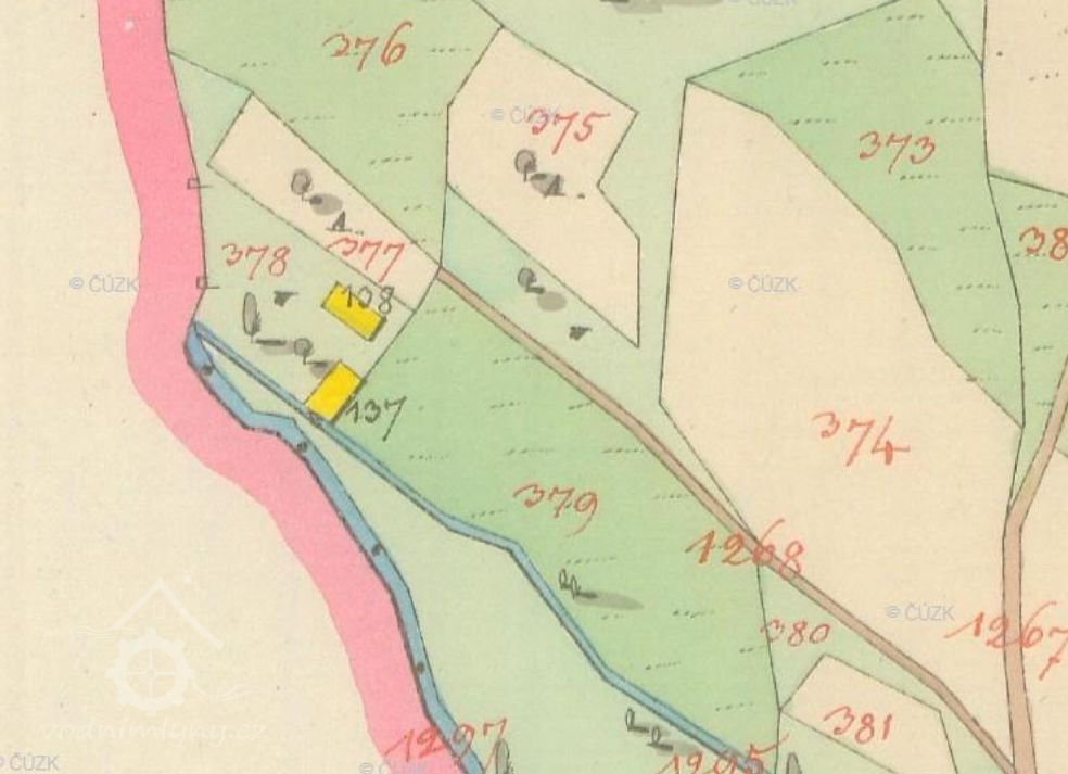 poháněn vodou. Stavba byla na samotě, při prvním číslování dostal dům číslo popisné 44.