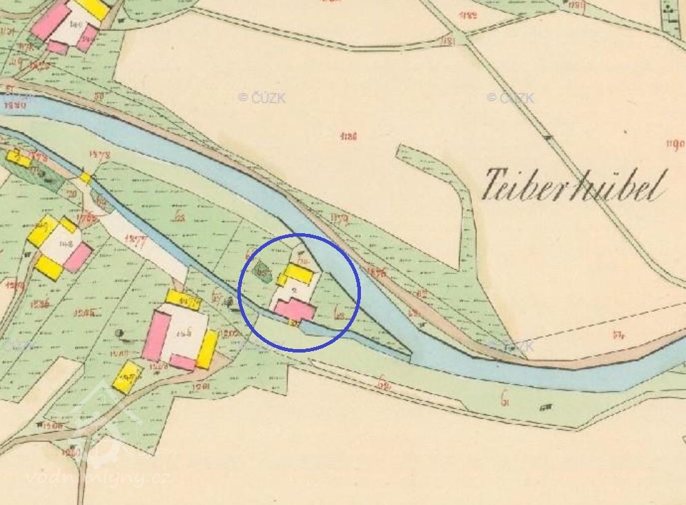PopisV r. 1930 zde bylo 1 kolo na svrchní vodu, průtok 0,76 m3/s, spád 1,8 m, výkon 10 k.