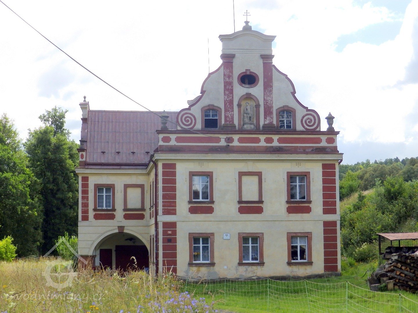 Zděný jednopatrový dům u dnes již zasypaného náhonového koryta, obdélného půdorysu s předstupujícím původně zděným rizalitem, střecha sedlová, pokryta plechem, komíny nové, jeden s původní pískovcovou hlavicí. Průčelí (přední štítová stěna) tříosé, okna dvoukřídlá, čtyřtabulková. V přízemí kamenné šambrány s ušima a kapkami, kamenné parapety profilované oblounem a deskou. Šambrány a parapety z červeného pískovce. Okna v patře stejná, kamenné šambrány bez uší, po obvodu pásek. Prostřední okno slepé. V postranních osách kolem oken štukový rám s ušima a kapkami, nad okny tři kapky, ve střední ose zdůrazněný klenák. Pod okny dekor vystouplého obdélného rámování s vykouslými rohy. Nárožní kvádrování, hladká pásová kordonová římsa. Nad profilovanou korunní římsou nižší plná atika s římsou, na konci vždy jedna váza. Na atice tříosý segmentový štít. Levá osa segmentově zaklenuté osmitabulkové okno se šambránou a klenákem, ve střední ose půlkruhově zaklenutá nika se sochou sv. Floriana. Kolem šambrána s klenákem, nad nikou oválný otvor se šambránou a klenákem. V pravé ose okenní otvor stejného tvaru a provedení jako v levé ose, bez výplně. Po stranách niky pilastry nesoucí segmentově ukončený štítový nástavec. V jeho vrcholu byla původně váza, dnes je ve vrcholu zasazen patriarší kříž. V úhlech štítu štukové voluty. Přední okapová stěna zprava tříosá, okna v přízemí třítabulková, v patře šestitabulková. Uprostřed předstupuje rizalit, v patře na všech stranách dvouosý křídlo, okna čtyřtabulková s kamennými římsami a šambránami s klenáky. V přízemí dva oblouky průjezdu s klenáky ve vrcholu, nasedají na pilíře, zaklenuto křížovou hřebínkovou klenbou. Na jednom klenáku letopočet 1793, na druhém mlynářský znak. Přízemí a nároží kvádrováno, hladká pásová kordonová římsa. Nad profilovanou korunní římsou na průčelí rizalitu nižší plná atika s římsou, na konci váza. Na atice jednoosý segmentový štít, ve kterém jsou nad sebou dva oválné otvory se šambránami a klenákem, po stranách pilastry nesoucí segmentově ukončený štítový nástavec. V zadní části za rizalitem novodobý tříosý přístavek. Zadní okapová stěna směrem k náhonu v přízemí dvoudílné čtyřtabulkové okno, jedno nové dvoudílné dvoutabulkové okno v segmentovém záklenku a nové vstupní dveře. V patře pět os dvoudílných čtyřtabulkových oken, dvě okna zamřížovaná. Kolem oken šambrány z červeného pískovce, při okraji pásek. V mezipatře dvě malá dvoudílná okénka, zamřížovaná, hladké kamenné šambrány. Hladká pásová kordonová římsa, mohutná profilovaná korunní římsa. U okna ve střední ose v patře a na nároží kvádrování. K zadní štítové stěně přiléhá novodobý přístavek, v patře vlevo okno s kamenným parapetem a šambránou ve štuku. Nad korunní římsou nižší plná atika s římsou, na koncích vždy jedna váza, na atice jednoosý segmentový štít. Dole osmitabulkové okno se šambránou, uprostřed s klenákem, segmentově zaklenuto. Nad ním oválné okno se šambránou a klenákem. Po stranách pilastry nesoucí segmentově ukončený štítový nástavec, ve vrcholu váza. V interiéru sklep sklenutý valeně s pětibokými výsečemi. Podlaha sklepa s kamennými dlaždicemi, vstup do sklepa původními železnými kovanými dveřmi v kamenném portálu. Portál s ušima, u okraje profilován výžlabkem a páskem, na nadpraží monogram AB a vročení 1776.