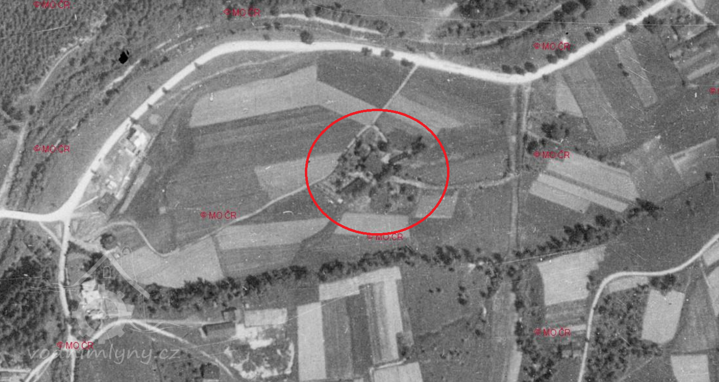 Východně terénní pozůstatky mlýnského náhonu.