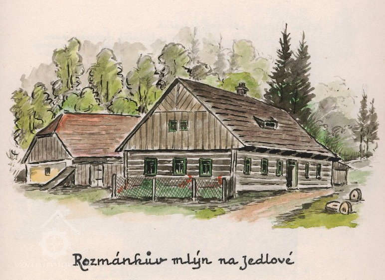 "...Postaven byl roku 1800 nákladem Ignáce Kyzlíka, jak lomeniční nápis, dosti již nečitelný, ukazuje a pozdější mlynáři jsou nám neznámí. Posledním právním mlynářem a majitelem byl Rozmánek, Němec, který zde pekl chleba a mlel obilí až do konce druhé světové války. Při odsunu Němců r. 1946 byl Rozmánek ze mlýna vyhnán a národní správu převzal František Štěpán, mlynář z Mnichové. Nový majitel byl přítomen odchodu rodiny Rozmánkovy ze mlýna... Říkal, že na tento moment do smrti nezapomene, jak mlynář křižoval dveře, líbal několikráte práh domova, líbal tři mlýnské kameny ležící u cesty, s obnaženou hlavou a čepicí v ruce neustále mával domovu na pozdrav..." Zdroj: http://www.destne.info/historie/mlyny/