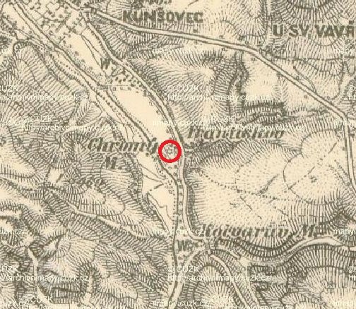 Nedaleko odtud stojí velký kamenný kříž, postavený mlynářem 1855 na paměť svatby císaře Františka Josefa I. s Alžbětou.